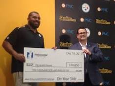 Pittsburgh Steelers' Cameron Heyward gets giant Nationwide check for charity Pittsburgh Steelers defensive end Cameron Heyward accepts a check from Nationwide insurance on behalf of his charity, the Heyward House.