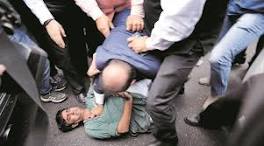 Sedition case against JNUSU president: Lawyers, BJP MLA take law in their fists BJP MLA Om Prakash Sharma assaults CPI leader Ameeque Jamei outside Patiala House Courts, Monday. (Source: Express photo Ravi Kanojia).