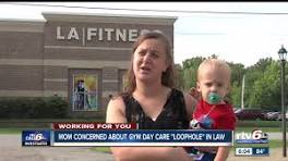 Mom concerned about gym child care "loophole" in Indiana law INDIANAPOLIS — An Indianapolis mom is speaking out about what she calls "dangerous" conditions at a gym day care where she recently worked.