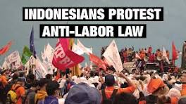 Thousands hit the streets against re-introduction of omnibus law in Indonesia Trade unions have argued that the law would undermine hard fought protections for job security, minimum wages, paid leaves and severance pay.
