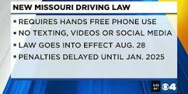 New Missouri texting and driving law to go into effect in August - KMOV The law prohibits texting while driving and restricts other cell phone use behind the wheel. Governor Mike Parson signed the law late last week. It ...