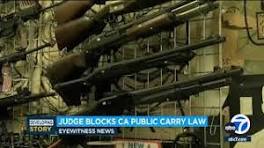 Federal judge blocks California law that would ban carrying firearms in most public places ... law was set to take effect. U.S. District Judge Cormac Carney issued a preliminary injunction blocking the law and wrote in his decision that the ...